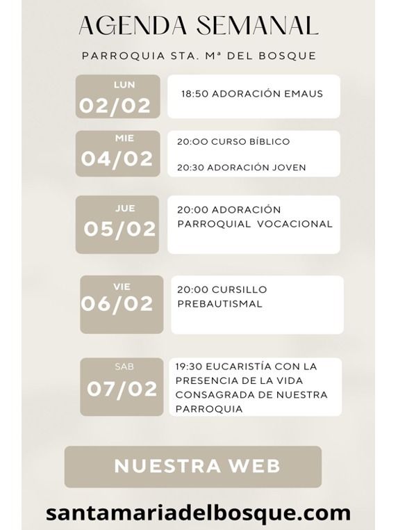 Actividades parroquiales del 2 al 8 de febrero.